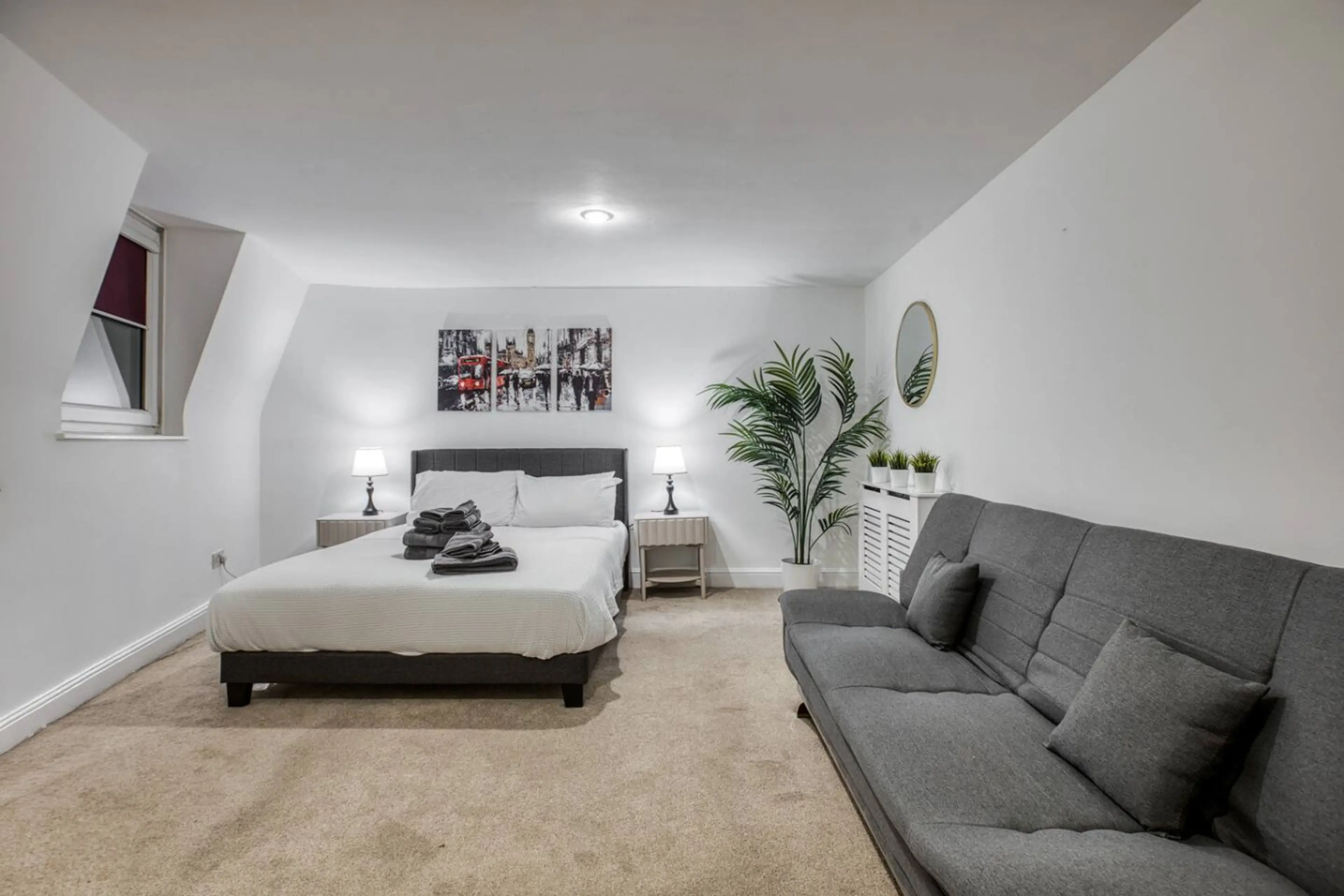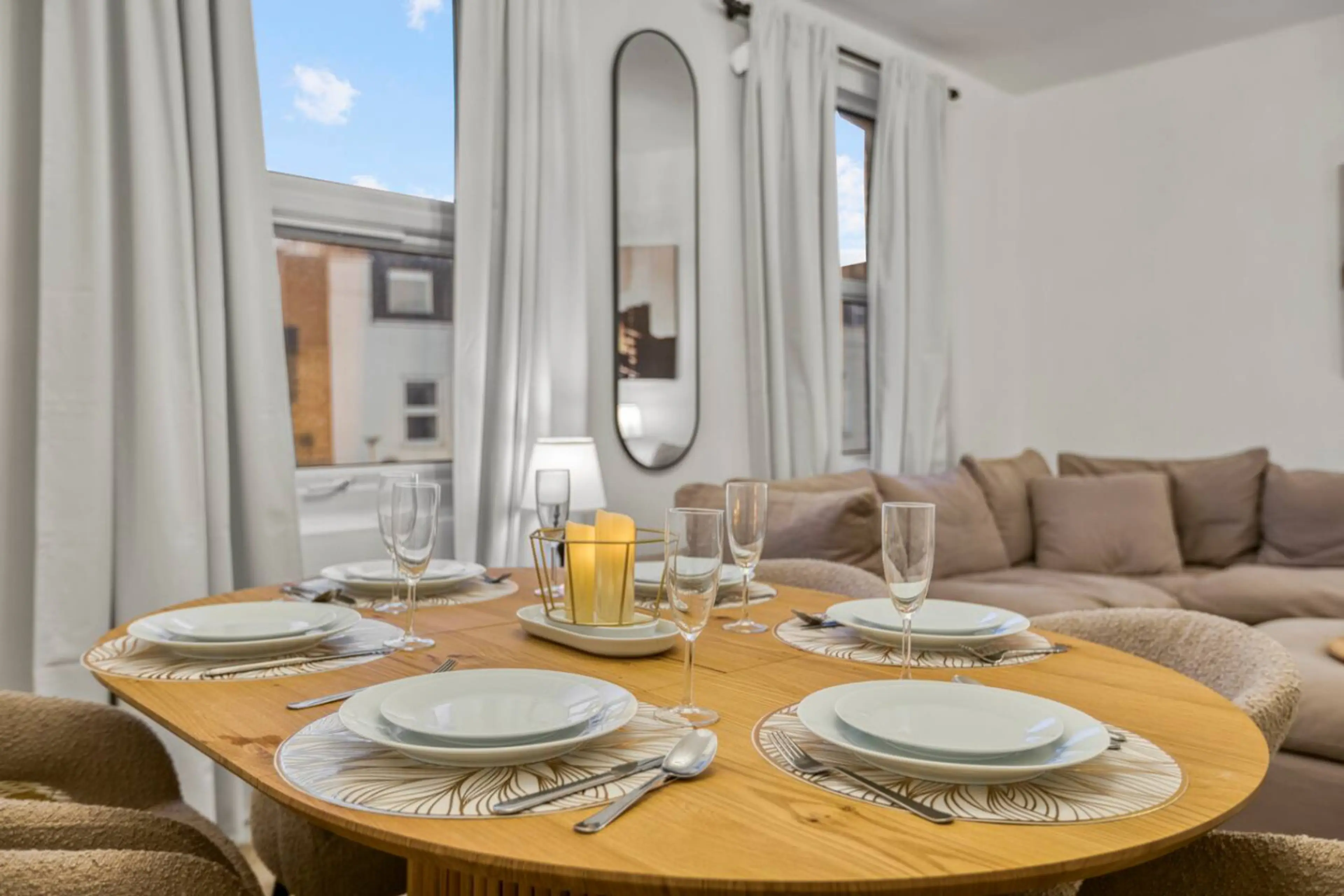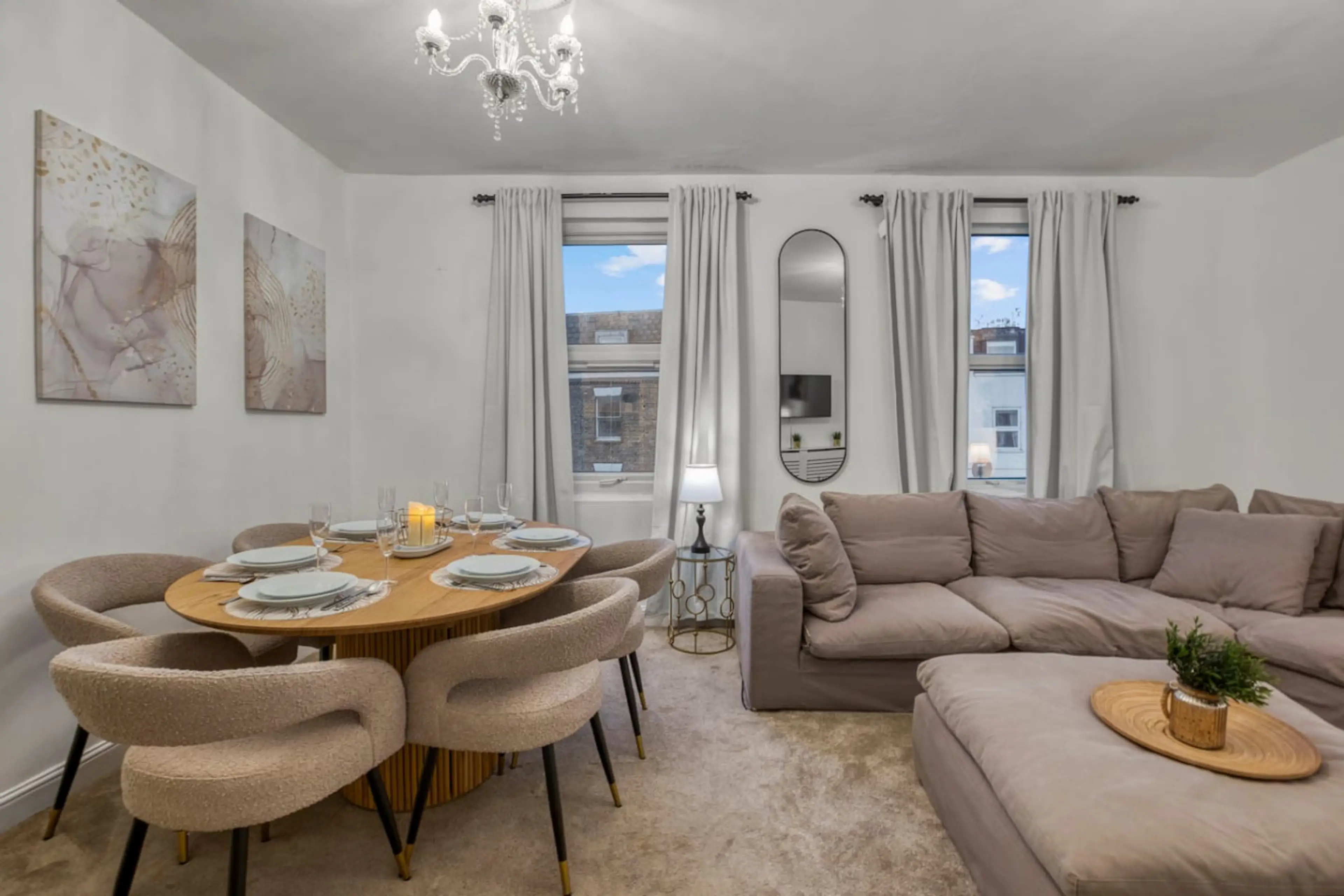 Enjoy a stylish stay in this bright 2-bedroom flat in NW5, moments from Camden Market and Primrose Hill. Ideal for up to 5 guests, it features a spacious master bedroom with a king bed and sofa bed, plus a second bedroom with a king bed. A modern bathroom, fully equipped kitchen and comfy living s...